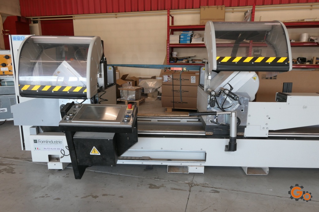 tronçonneuse double FOM type BLITZ ALVA d'occasion. Elle peut couper des profilés aluminium de grosses sections puisqu"elle dispose de lames en Ø 550 mm.