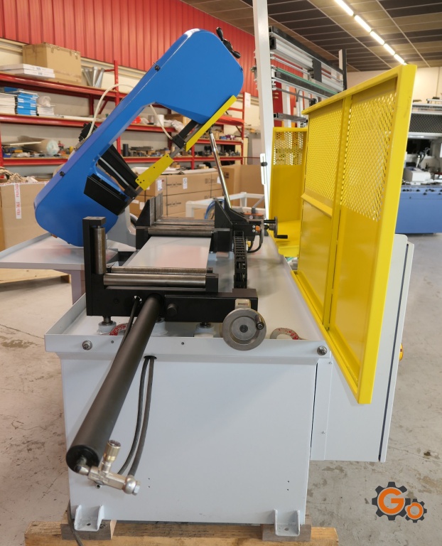 cette scie à ruban métal hydraulique ajoute l’avantage de l’alimentation automatique du matériau.